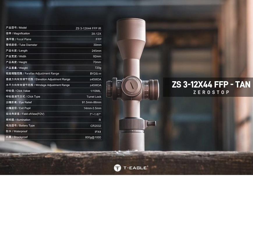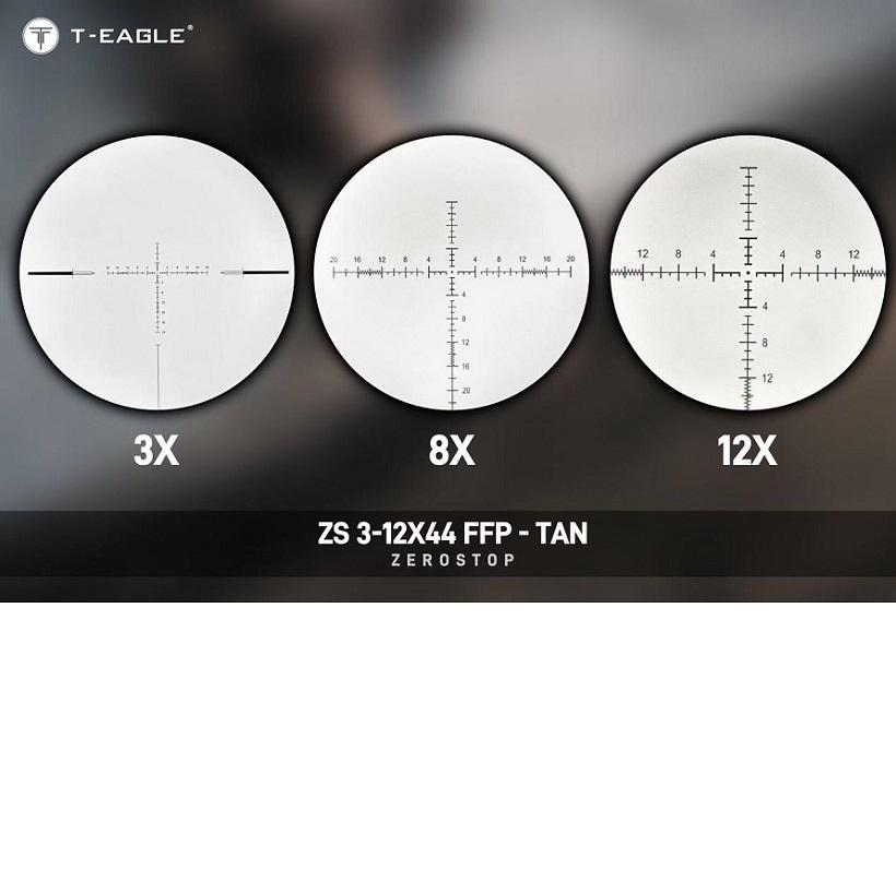 Strona główna » Produkty » Luneta celownicza T-EAGLE ZS 3-12X44 FFP IR kompaktowa Zero Stop + montaż (kolor TAN )