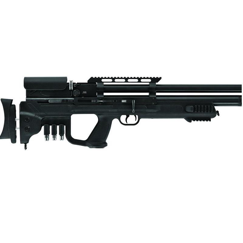 - Gladius Long mocna wiatrówka PCP Hatsan typu bullpup z 6-stopniową regulacją pokrętłem energii wylotowej śrutu w zależności od dystansu, potrzeb. Poprzez zastosowanie układu bezkolbowego uzyskano kompaktowe wymiary przy zachowaniu normalnej długości lufy.